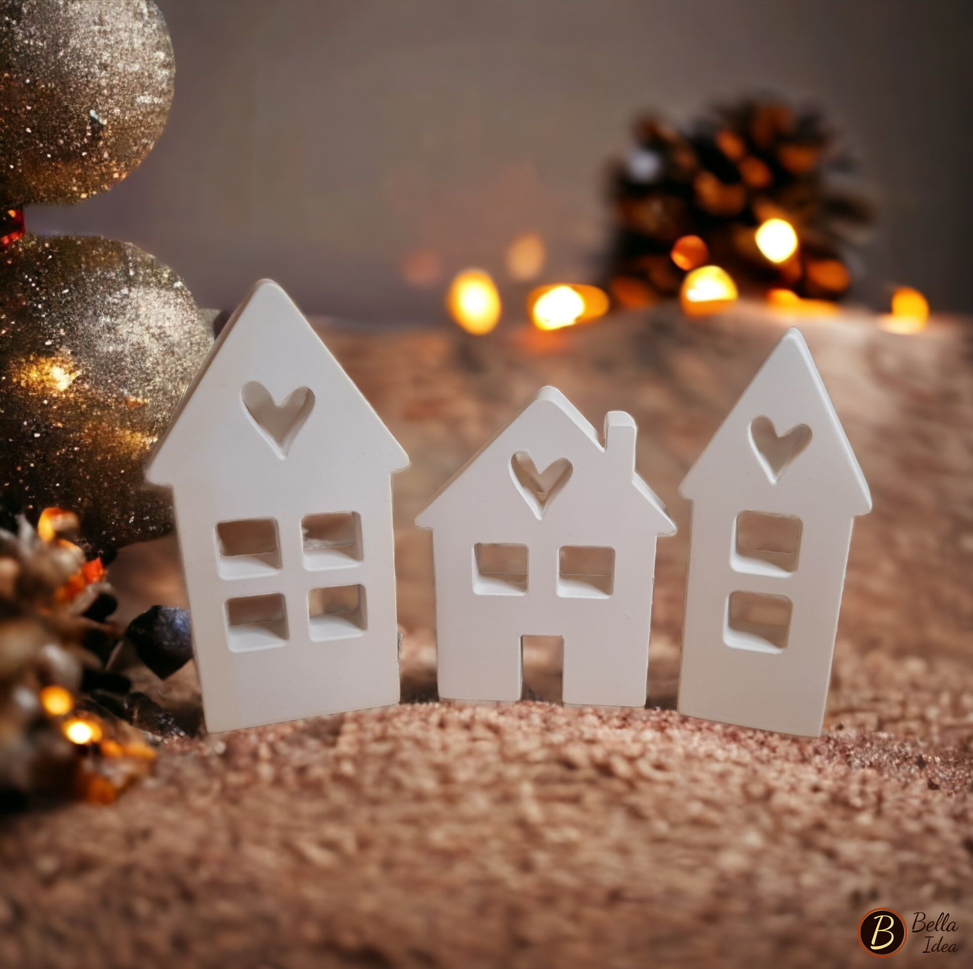 Tre diversi modelli di casette in gesso sintetico artistico di alta qualità (Diplast GV41) realizzate a mano singolarmente. Creazione dalle linee semplici ed eleganti adatta ad ogni ambiente.