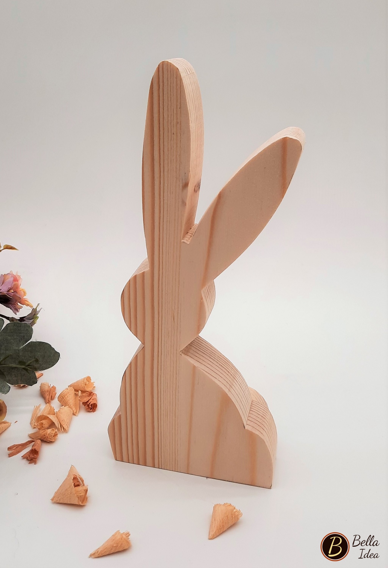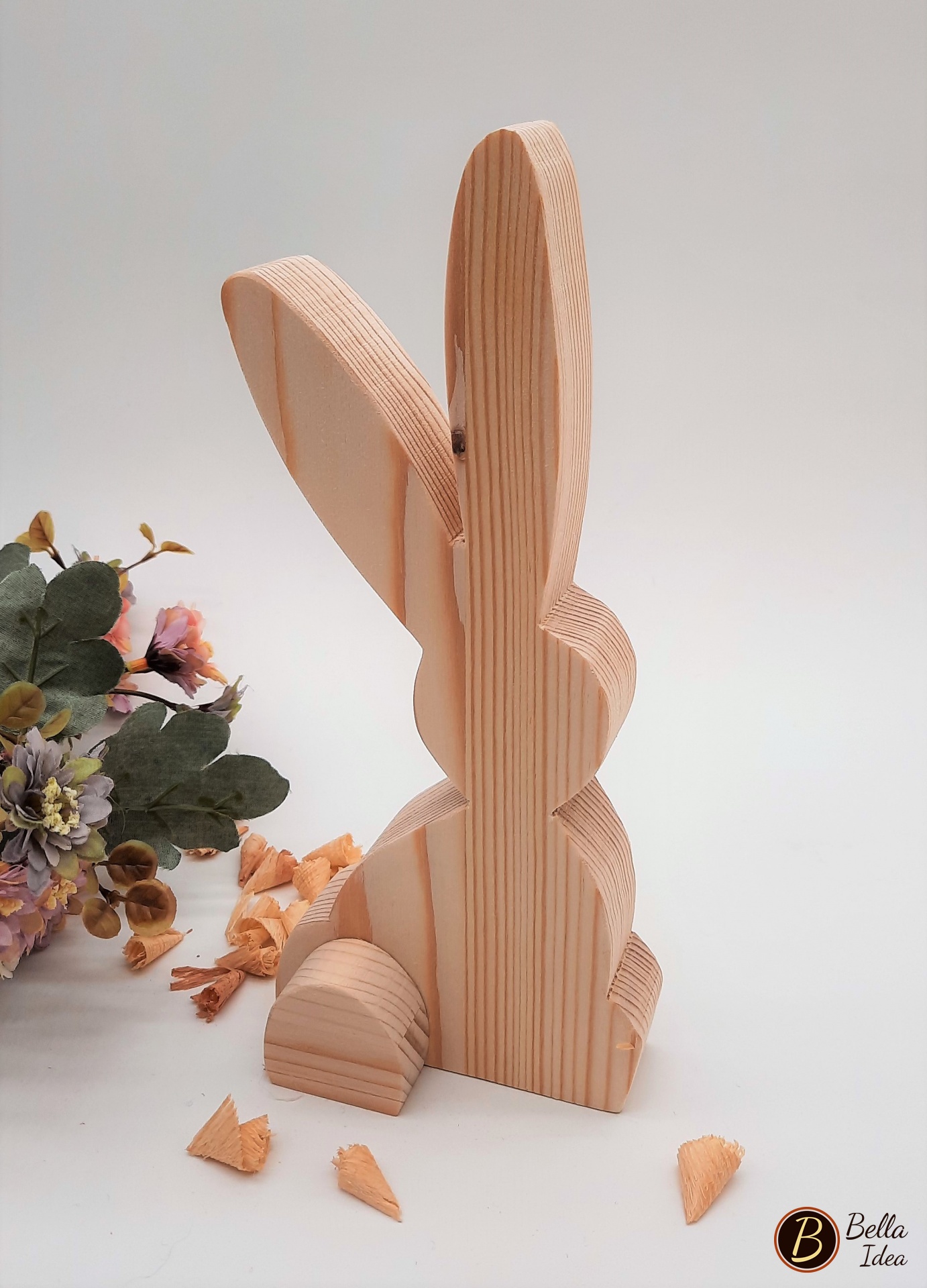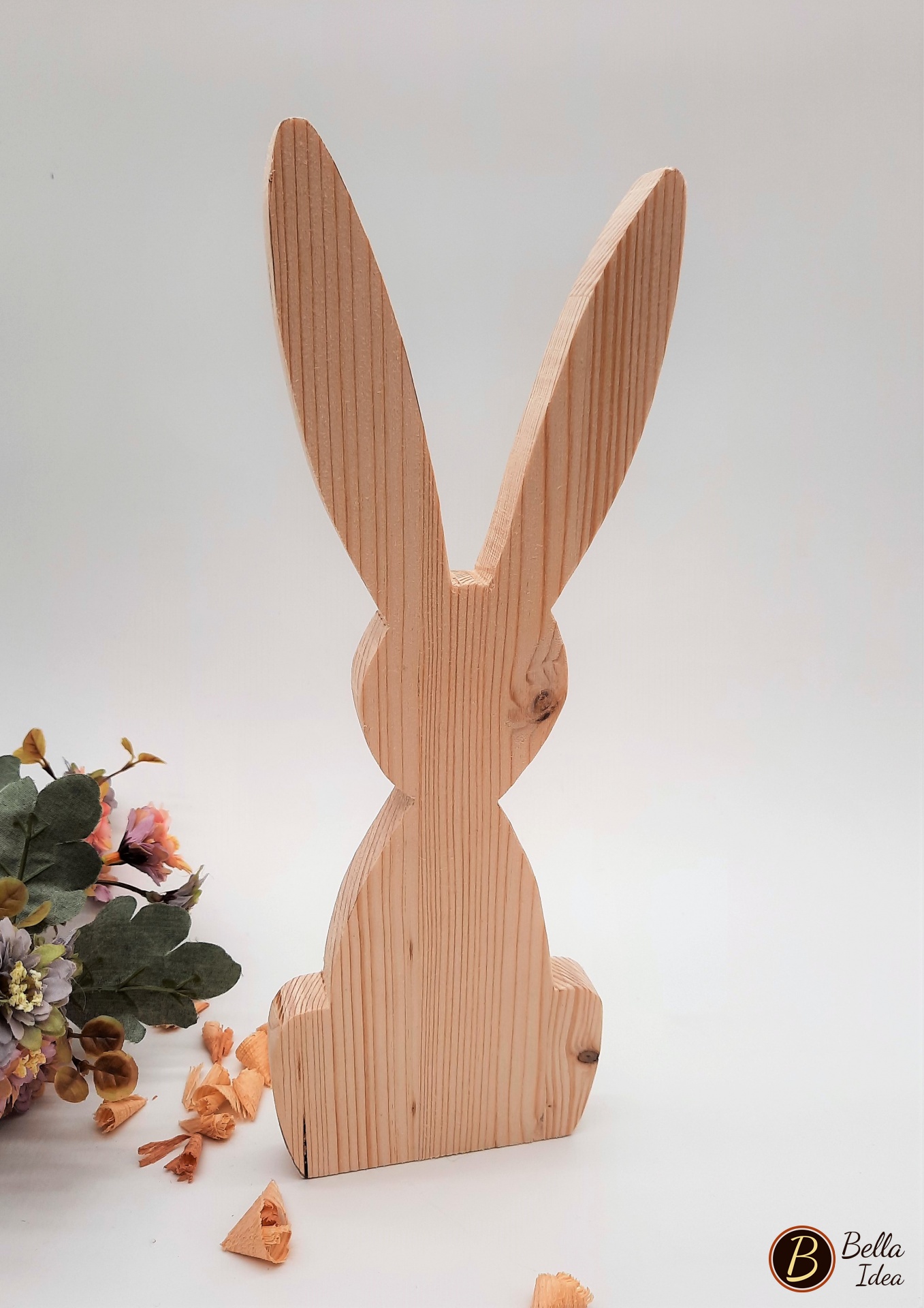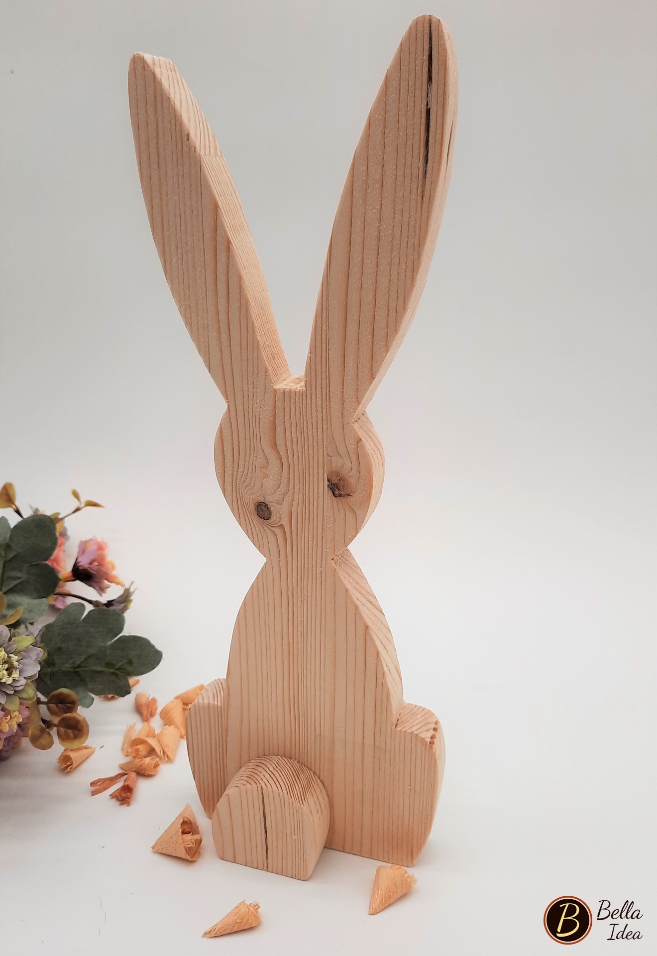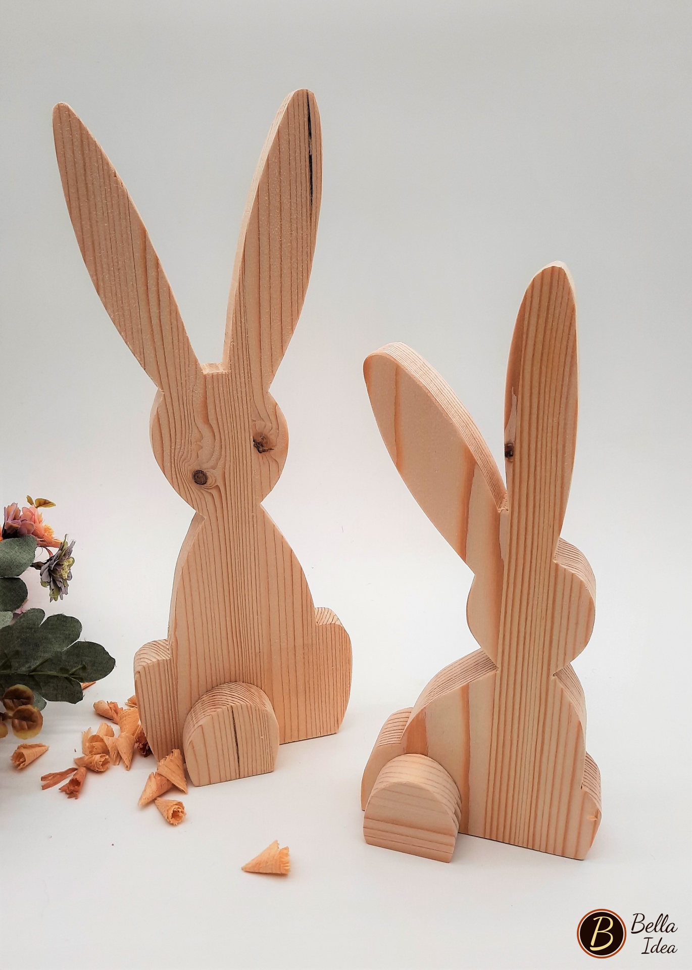 I conigli dalle lunghe orecchie in legno di abete naturale sono ideati e creati a mano, senza colorazione.