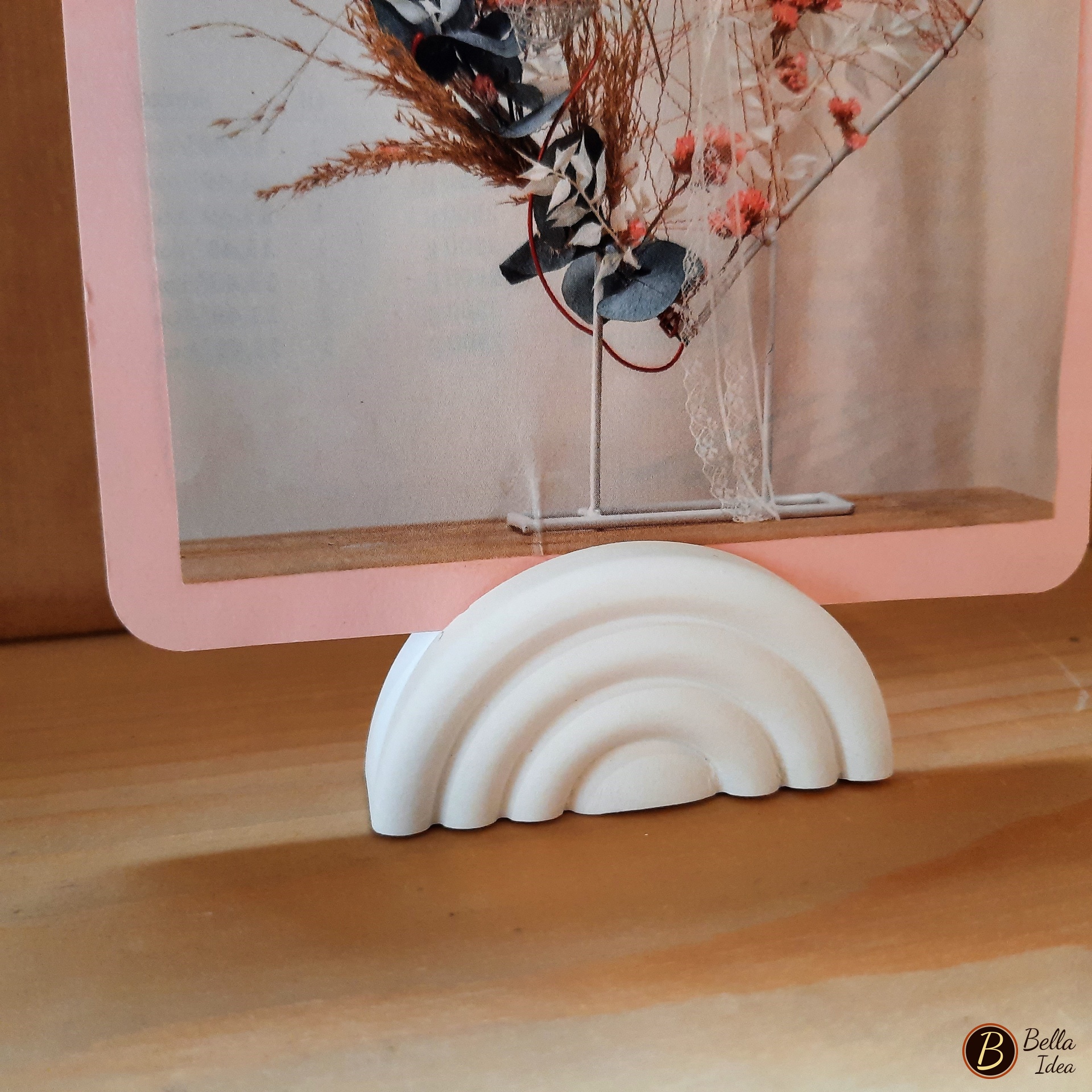 Piccolo portafoto con base a forma di arcobaleno, realizzato a mano, creazione artigianale in gesso sintetico artistico di alta qualità (Diplast GV41).