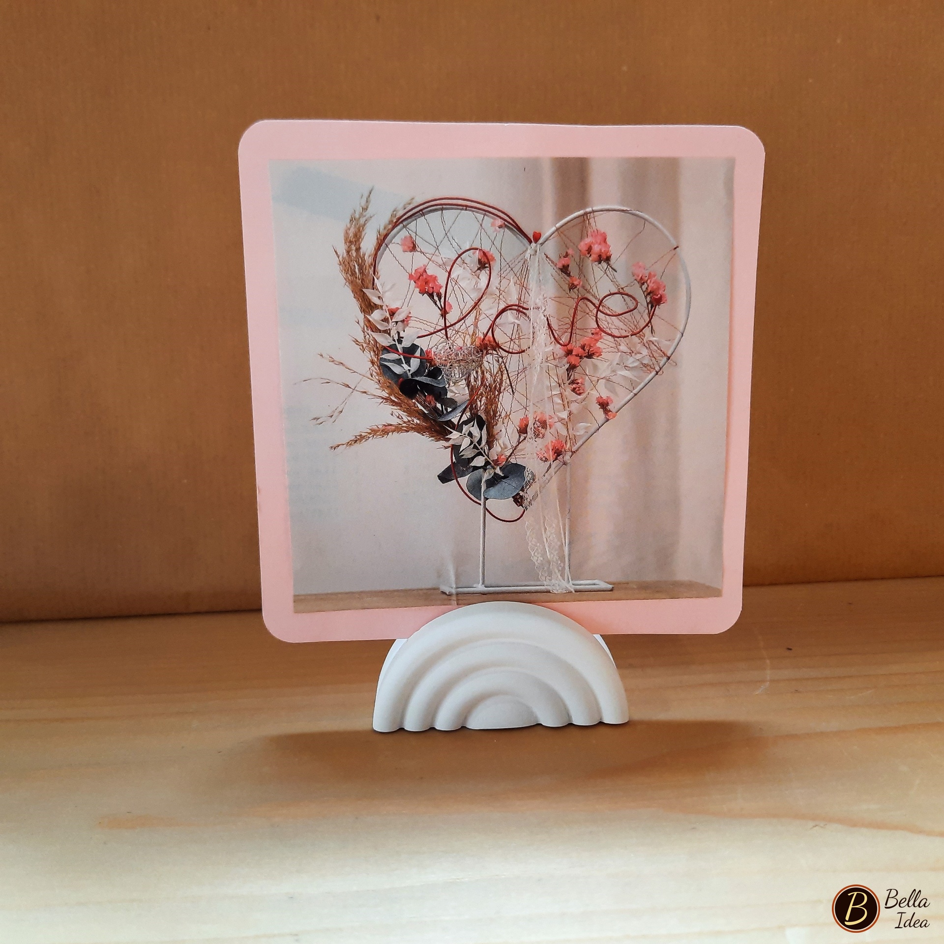 Questo piccolo portafoto arcobaleno ha uno stile elegante ed essenziale che si adatta a qualsiasi ambiente, può essere utilizzato come supporto per fotografie o biglietti, come segnaposto per decorare la tavola. Simpatica idea da regalare come ricordo per i tuoi ospiti.