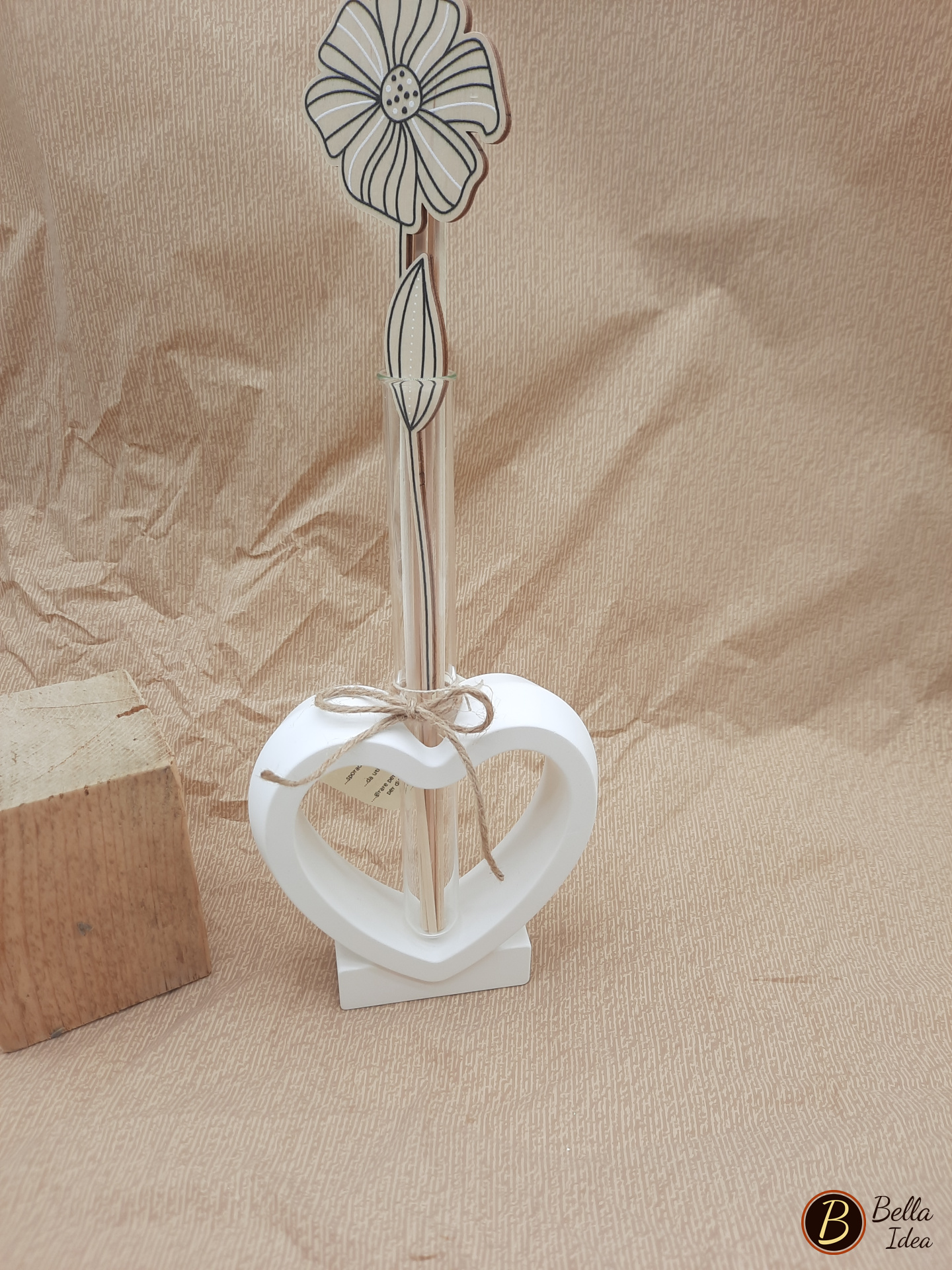 La proposte comprende la base in gesso, provetta in vetro e tre bastoncini microforati , il fiore in legno può essere aggiunto se richiesto.