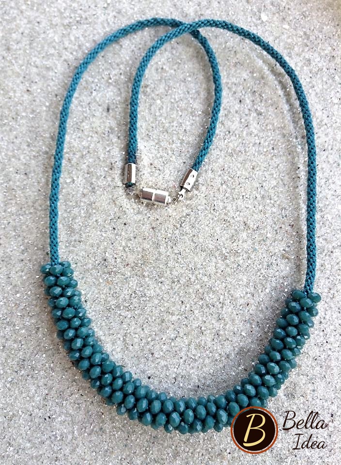 Collana Kumihimo perline sfaccettate ottanio